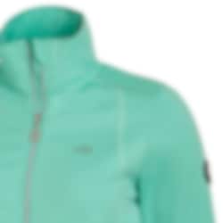 Der Pullover hat die Farbe Opal und ist aus einem sehr angenehmen Material gefertigt. Auf der Brust und auf der Schulter befindet sich ein kleines Schockemöhle-Logo. Das Wort "Sports" ist mit Glitzersteinchen auf der Rückseite des Kragens abgebildet. Auf der Vorderseite gibt es einen 2-Wege-Reißverschluss und Reißverschlusstaschen.