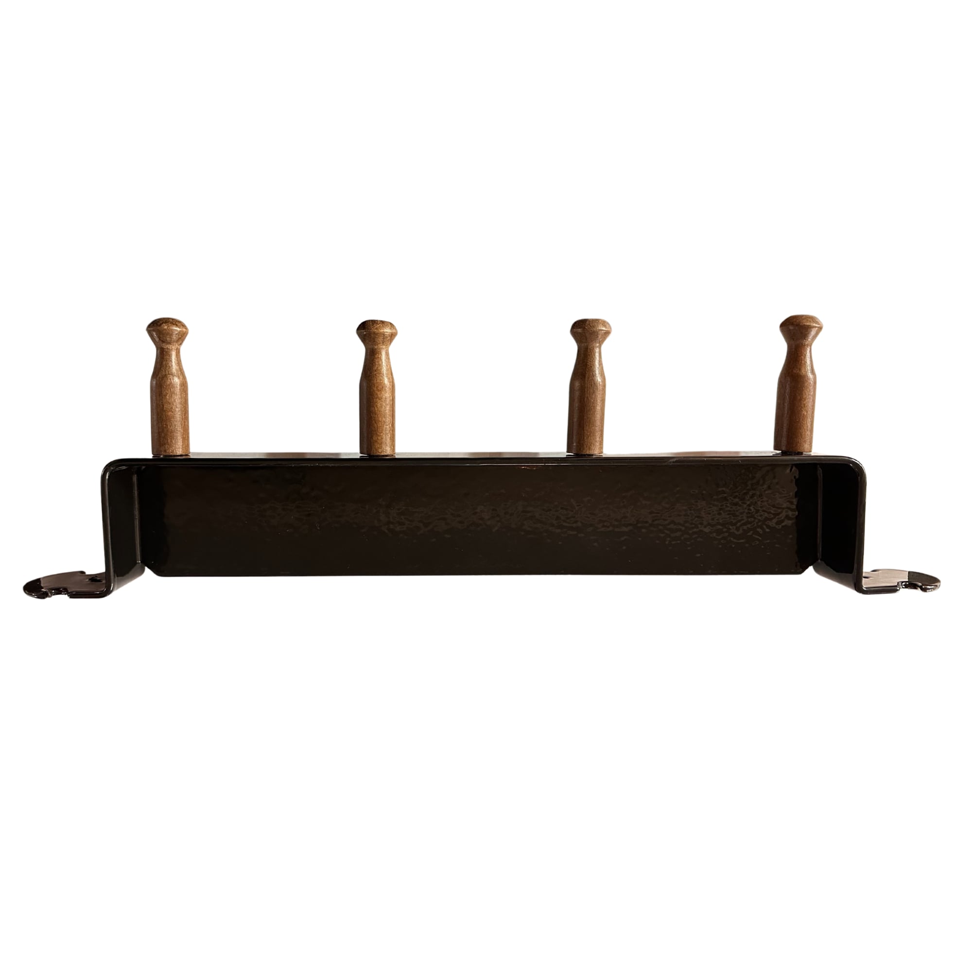 Bringen Sie Ordnung in den Sattelraum oder Flur mit dem Shelfie Retro Line Aufhänger von Stubbs England. Dieser praktische Aufhänger verfügt über vier robuste Holzstifte mit 8 cm Durchmesser, an denen Sie Kleidung, Halfter oder andere Ausrüstungsgegenstände aufhängen können. Zusätzlich bietet das eingebaute Regal zusätzlichen Stauraum, beispielsweise für Bürsten oder kleines Zubehör.