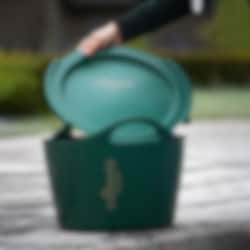 Grüner Flexi-Eimer mit Logo, fasst 17 Liter, von St. Hippolyt.