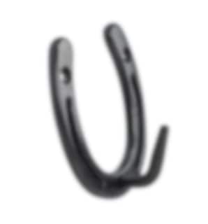 Schwarz lackierter Hänger/Haken, der sowohl zu Hause als auch in der Sattelkammer als Kleiderhaken passt.