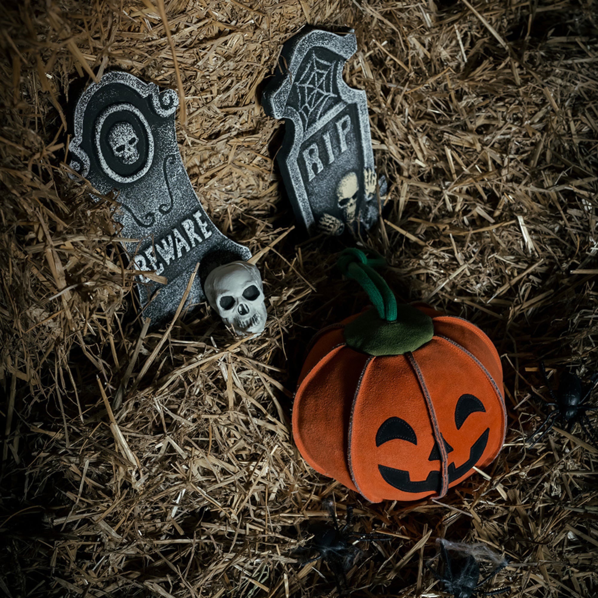 Das Pferdespielzeug Kürbis ist ein Halloween-inspiriertes, kugelförmiges Spielzeug aus strapazierfähigem Jutegewebe mit Kokosfüllung. Schaurig, aber süß - sicher und unterhaltsam für Pferde.