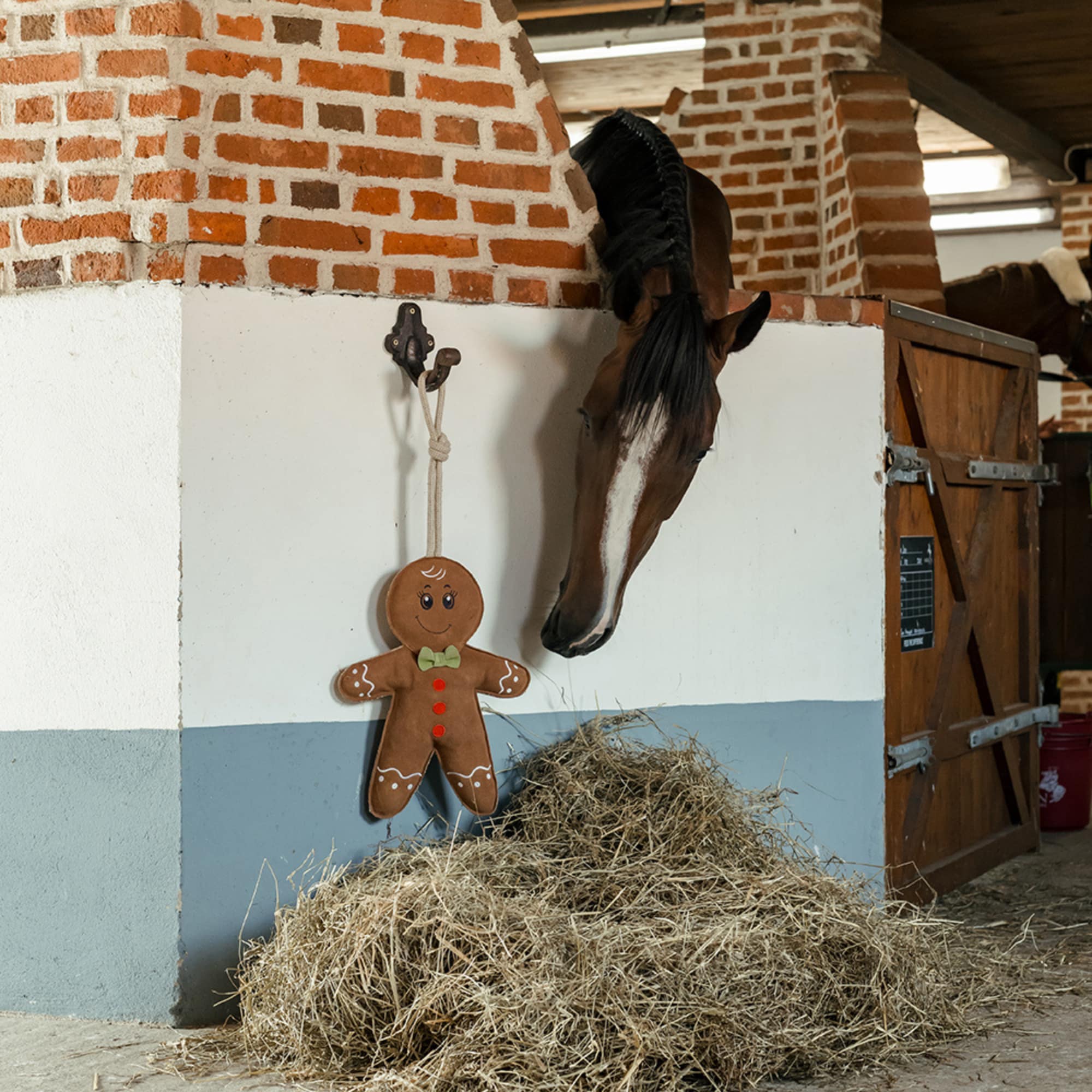 Das Pferdespielzeug Lebkuchenmann ist eine süße und festliche Dekoration für die Pferdebox. Perfekt als Weihnachtsgeschenk für Pferd und Reiter und sorgt für stimmungsvolle Weihnachtsatmosphäre im Stall.