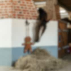 Das Material des Spielzeugs besteht aus robustem Jutegewebe, und ein Seil dient zur Aufhängung. Der Lebkuchenmann ist mit Kokosfasern gefüllt, sodass keinerlei Verletzungsgefahr besteht, falls das Pferd sein Spielzeug doch einmal durchbeißen sollte.