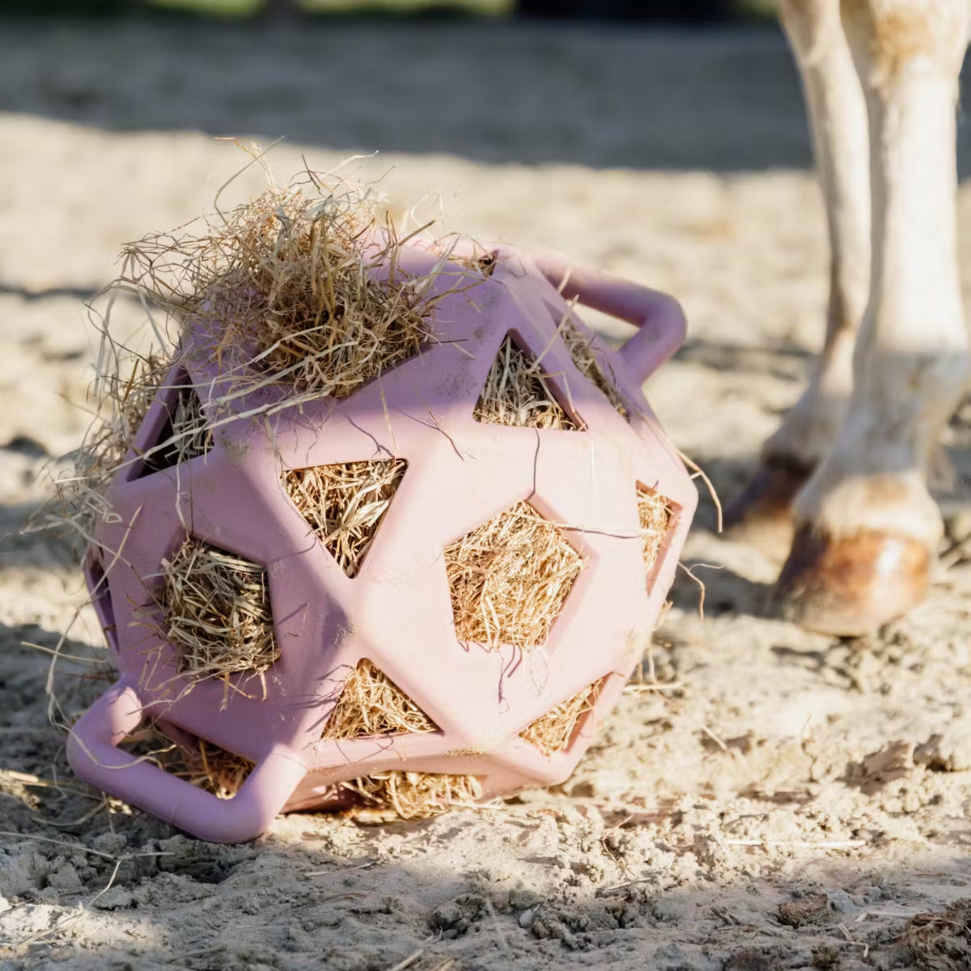 Relax Horse Play & Hay Ball ist perfekt, um Langeweile bei Pferden sowohl auf der Weide als auch in der Box vorzubeugen. Er bietet dem Pferd Beschäftigung und dient gleichzeitig als Slowfeeder, da er mit Heu gefüllt werden kann. Dieser Heu- und Spielball ist aus Gummi gefertigt, wodurch er kaum Geräusche macht und so eine stressfreie Umgebung für die Pferde schafft. Das Material sorgt zudem für eine sichere Nutzung.