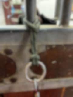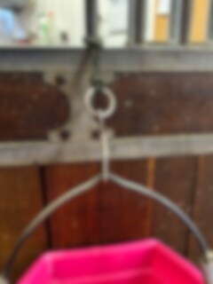 Das Aufhängeband sind sehr nützlich und kann vielseitig verwendet werden. Fädeln Sie das Band einfach um das Gitter in der Box, um den Zaunpfahl auf der Weide oder hängen Sie es im Stall auf, um den Wassereimer aufzuhängen oder den Wasserschlauch zu organisieren. Nur die Vorstellungskraft setzt hier die Grenzen (der Karabinerhaken ist separat erhältlich).