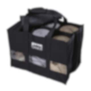 Bandageväskan är till för att förvara dina benlindor eller skydd. Väskan har 6 st fack och försluts med ett lock så det håller dina skydd och benlindor skyddade från smuts. Väskan har två stycken handtag så den är lätt att bära med sig, perfekt när du åker iväg på träningar och tävlingar. Fungerar även bra att bära med sig andra saker också. Färg: Svart