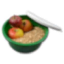 Futtereimer mit Deckel von Hansbo Sport. Das Gewa-Modell hat eine perfekte Größe und fasst 2 l und passt somit perfekt in Futterluken. In grün erhältlich.