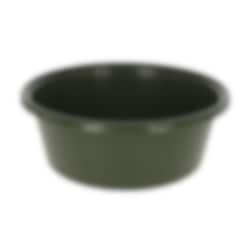 Futterschüssel für Pferdefutter mit 6 Litern, hergestellt aus temperaturbeständigem Kunststoff mit praktischer Messskala in Litern und US-Gallonen. Olivgrün