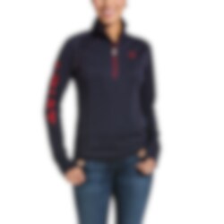 Tek Team Fleece verfügt über die AriatTEK Cold Series-Technologie, die Sie warm hält, die Moisture Movement Technology, die Feuchtigkeit vom Körper wegtransportiert, und gebürstetes Fleece für besten Komfort und Wärme. Der Reitpullover hat eine schöne marineblaue Farbe mit roten Details wie dem Reißverschluss, den Logos auf der Brust und am einen Ärmel. Tek Team Fleece hat auch Löcher für die Daumen und einen schönen etwas höheren Kragen.