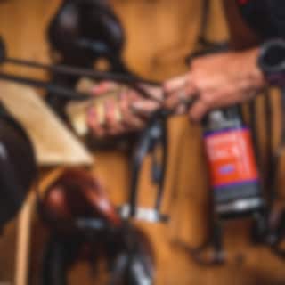 Besprühen Sie das Leder und wischen Sie den Reiniger dann mit einem Tuch ab. Wasser braucht man nicht! Tack Cleaner Step 1 entfernt Schmutz, Fett und Schweiß vom Leder und macht es leicht zu reinigen.