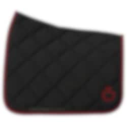 Diese Dressurschabracke von Cavalleria Toscana ist unglaublich schön mit großen gesteppten Quadraten. Die Diamond Quilted Jersey Dressurschabracke kombiniert schlicht die Grundfarbe Schwarz mit einer Einfassung in Bordeaux und hat ein CT-Logo in passendem Bordeaux sowie einen schwarzen Rückenkanal mit Cavalleria Toscana Logo ebenfalls dort.