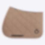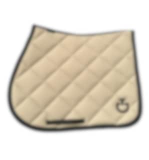 Diese Springschabracke von Cavalleria Toscana ist stilvoll und elegant mit großen gesteppten Quadraten. Die Diamond Quilted Jersey Springschabracke ist in einer beige Farbe, hat ein schwarz CT-Logo seitlich sowie einen schwarzen Kanal entlang des Rückens mit dem Cavalleria Toscana-Branding auch dort.