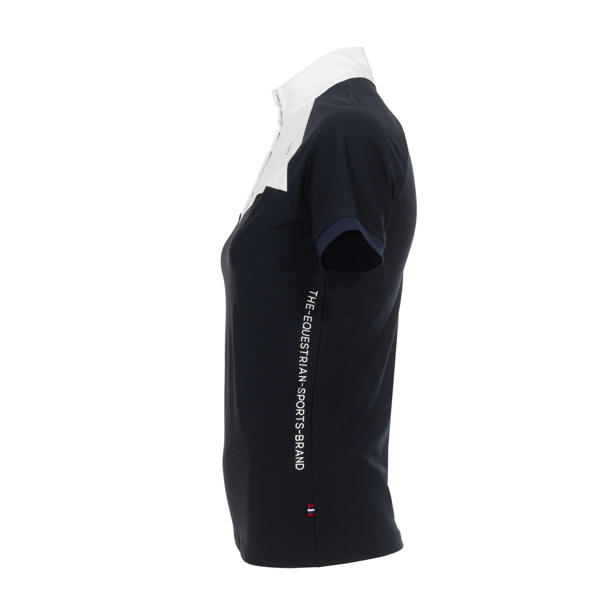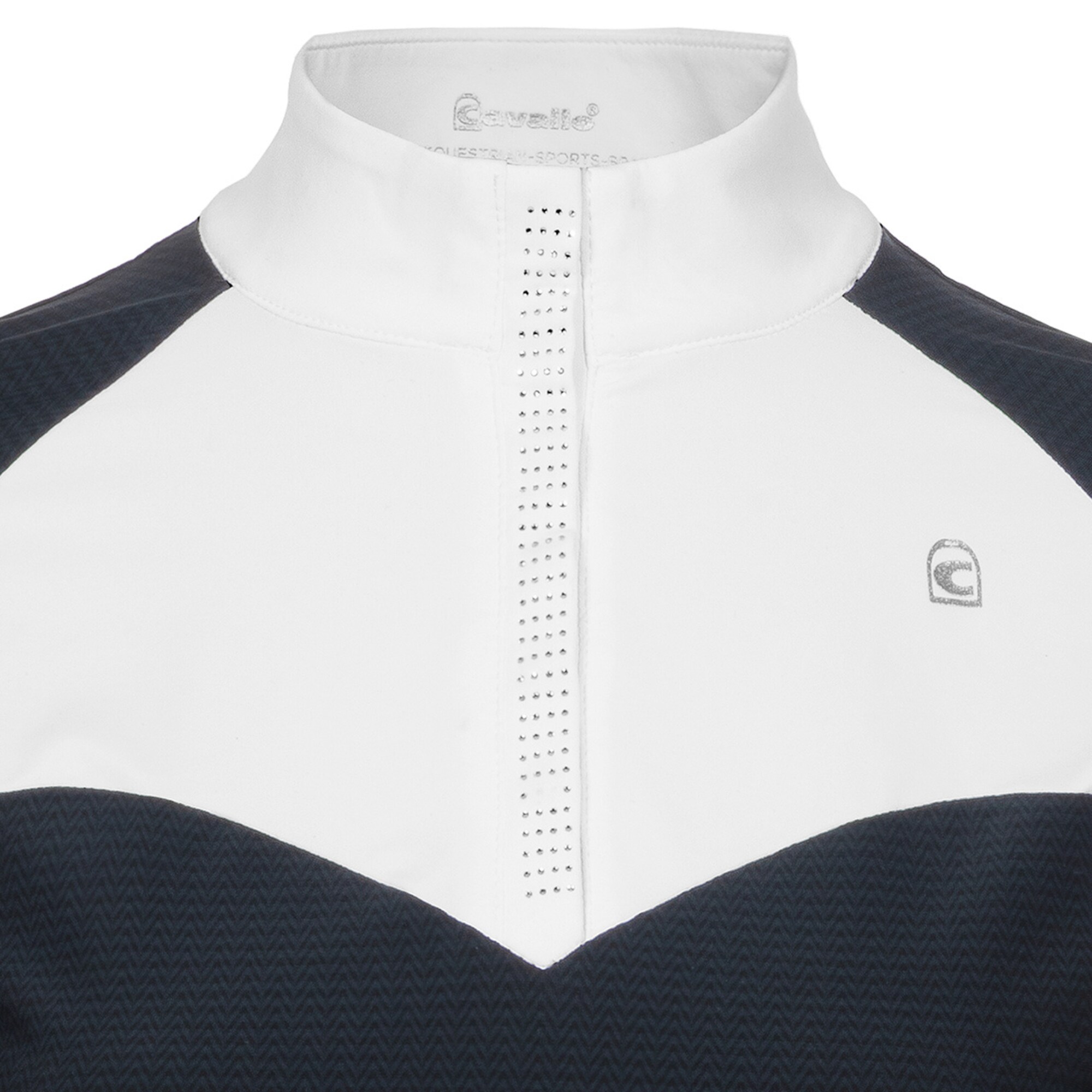 Cavalbrisa Turniershirt von Cavallo ist ein kurzärmliges Turniertop aus funktionalem Material, das gut atmungsaktiv ist und schnell trocknet, und mit feinen Kristalldetails verziert ist.