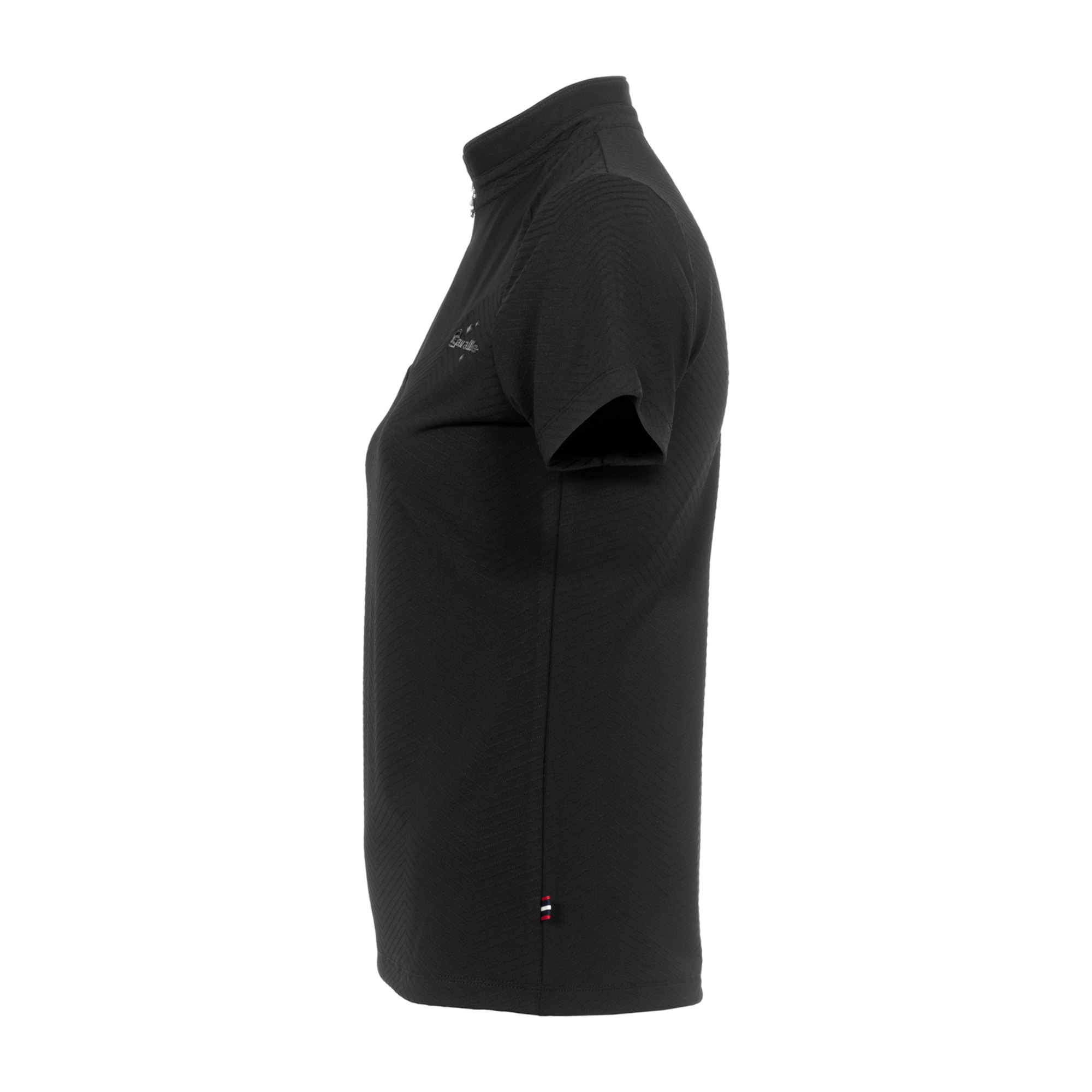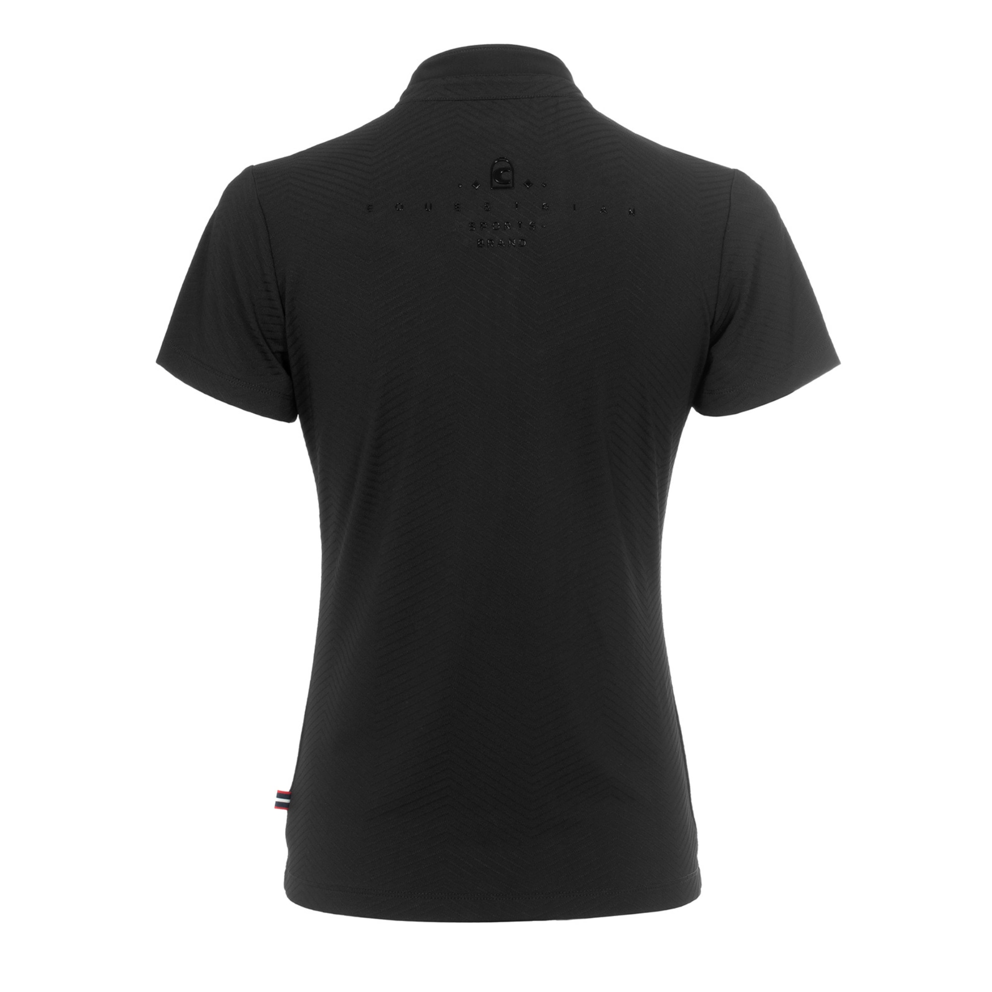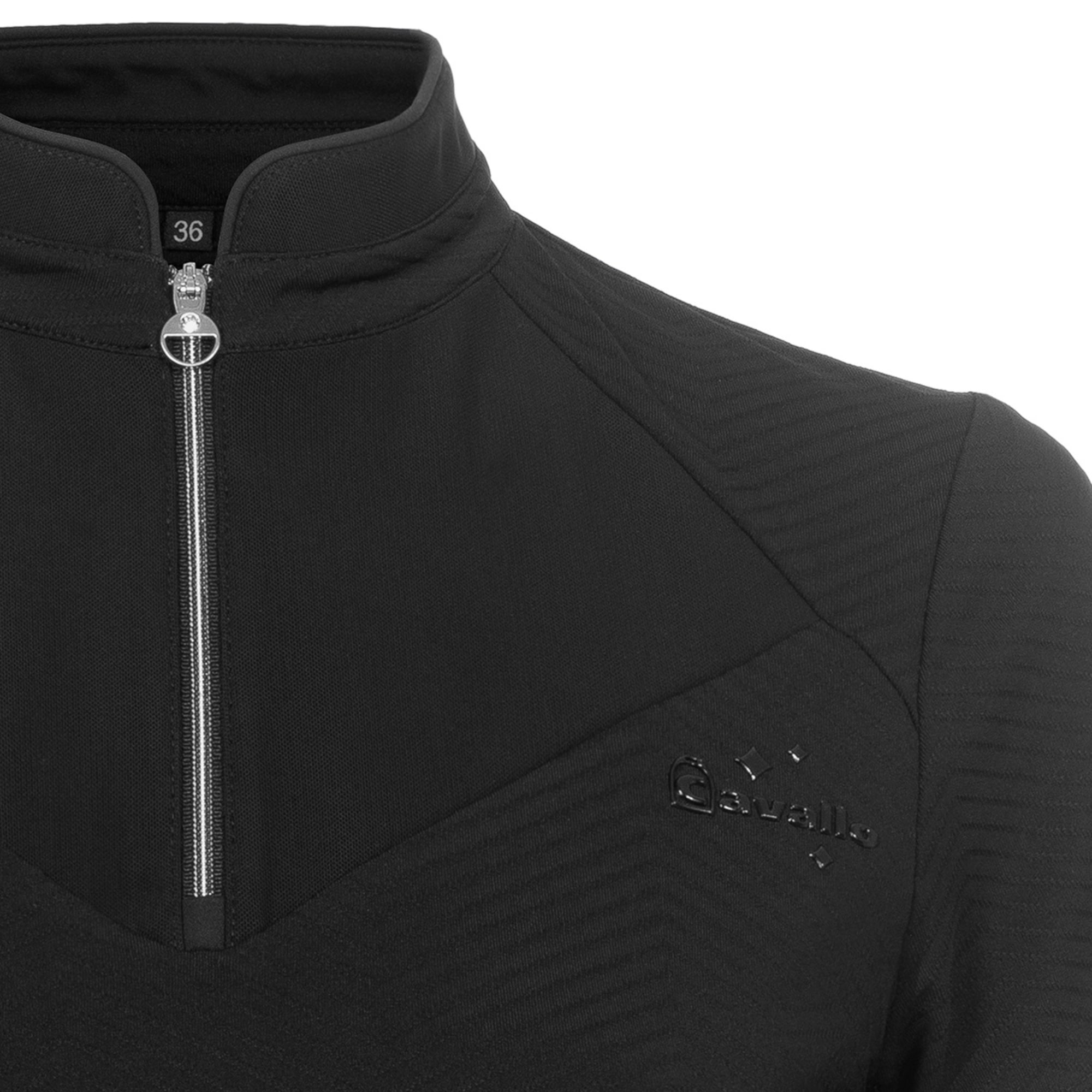 Cavalbritny T-Shirt von Cavallo ist ein kurzärmliges Trainingsshirt mit Stehkragen, gefertigt aus funktionalem Material. Das Modell hat einen kurzen Reißverschluss vorne mit Cavallo-Anhänger, der mit Kristallsteinen verziert ist.
