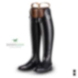 De Niro Green Line, eine komplett neue vegane Reitstiefel-Serie, bei der die Reitstiefel komplett ohne tierische Produkte hergestellt werden. Stattdessen besteht das Material aus Obstabfällen – ein nachhaltiges umweltfreundliches Material.