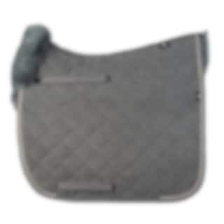 Die Lammfellschabracke ist in der Farbe Graphit mit dunkelgrauem Lammfell und einer schönen Zierkordel entlang der Kante gefertigt.