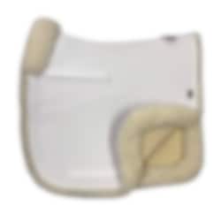 Wunderschöne weiße Dressurschabracke von EA Mattes mit Innenkante aus hochwertigem Lammfell.