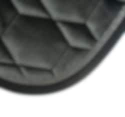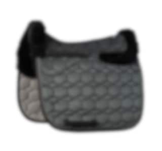 Dies ist eine Lammfellschabracke von höchster Qualität mit integriertem Lammfellpad im Inneren. Die Kanäle verlaufen beidseitig entlang der Wirbelsäule des Pferdes sowie um das Vorder- und Hinterzwiesel des Sattels. Das Lammfell hilft, den Druck gleichmäßig zu verteilen und Feuchtigkeit vom Pferd abzuleiten. Die Oberseite der Schabracke besteht aus herrlichem Samt.