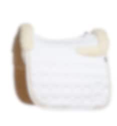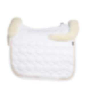 Hierbei handelt es sich um eine Lammfellschabracke von höchster Qualität, die im Inneren über einen integrierten Lammfellpad verfügt und deren Kanäle auf beiden Seiten der Wirbelsäule des Pferdes sowie um den Vorder- und Hinterzwiesel des Sattels verlaufen. Das Lammfell trägt dazu bei, den Druck zu verteilen und die Feuchtigkeit vom Pferd wegzutransportieren. Die Oberseite der Schabracke besteht aus strapazierfähiger, gesteppter Baumwolle.