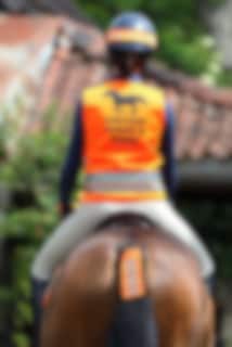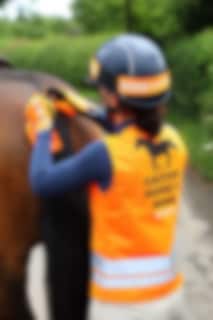Dünne Reflexweste, die einfach über der üblichen Reitkleidung getragen werden kann.