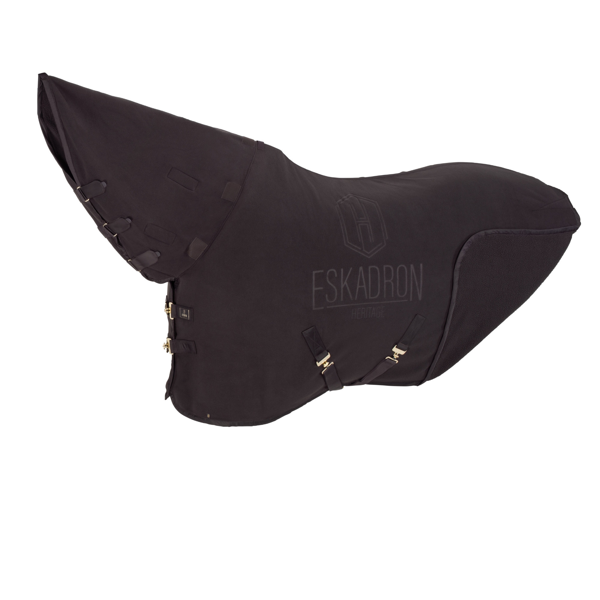 Diese Abschwitzdecke ist aus doppellagigem Fleece gefertigt, mit weichem, feuchtigkeitsableitendem Teddyfleece auf der Innenseite und einer eleganten, glatten Außenseite, die einen stilvollen und anspruchsvollen Eindruck vermittelt. Das feste Halsteil sorgt für zusätzliche Wärme und Komfort und wird einfach am Halfter befestigt, damit die Decke sicher sitzt. Für eine sichere und verstellbare Passform ist die Decke außerdem mit doppelten Brustverschlüssen mit Klettverstärkung, abnehmbaren Kreuzgurten und einem integrierten Schweifriemen ausgestattet.