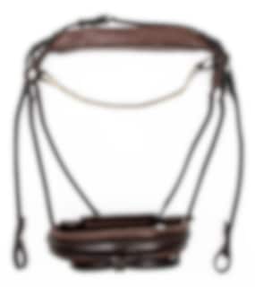 Finesse bridle Cassidy & Cathrine Dufour, rundgenäht, in der Farbe Braun mit brauner Polsterung und Messingschnallen.