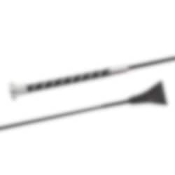 Die SilkTouch Crystal Springgerte hat einen Griff mit hervorragendem Halt und schönen Details in Form von vielen funkelnden Steinen in einer Spirale. Die Gerte ist schwarz mit Metallteilen in Chrome.
