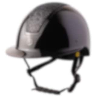 Reithelm mit MIPS Brain Protection System. HS MIPS Vision Glitter ist ein moderner, stylischer und preiswerter Reithelm mit MIPS. Schwarz Glossy mit schwarzem Glitzer und schwarzer Paspelierung.