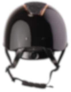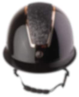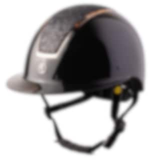 Reithelm mit MIPS Brain Protection System. HS MIPS Vision Glitter ist ein moderner, stylischer und preiswerter Reithelm mit MIPS. Schwarz Glossy mit schwarzem Glitzer und roséfarbener Paspelierung.