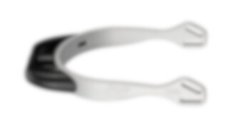 Silberner fairRide Sporen mit schwarzer Spitze von Sprenger. fairRide ist ein innovativer Sporn, der eine breitere Auflagefläche als der klassische Sporn hat.