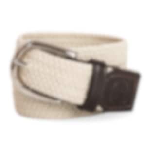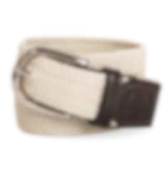Geflochtener, elastischer, beiger Gürtel mit schönen Lederdetails und schöner Schnalle.
