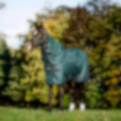 Diese leichte Outdoordecke verfügt über gerade, doppelte Frontschnallen, Kreuzgurte und vorgeformte Beinausschnitte für mehr Bewegungsfreiheit. Eine Schweifklappe und Schweifriemen sorgen für einen sicheren Sitz. Zudem ist ein abnehmbarer Halsteil im Lieferumfang enthalten.