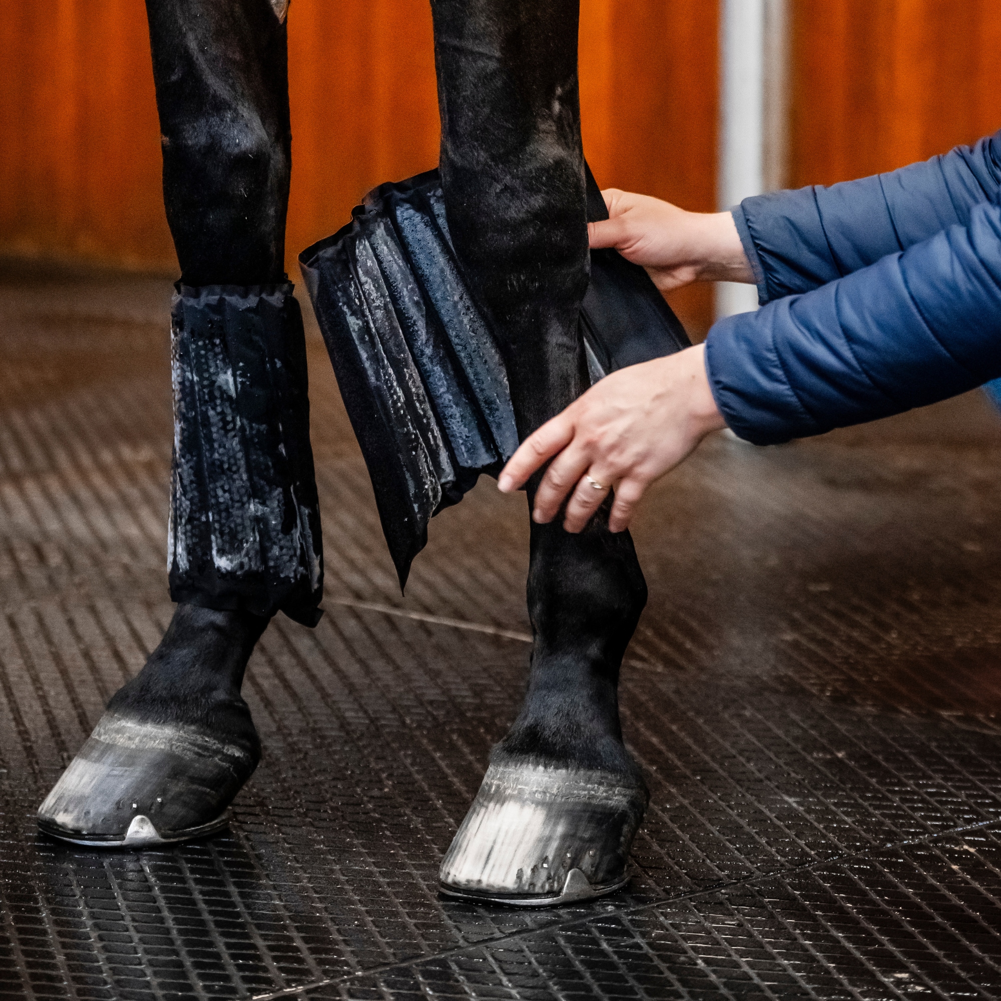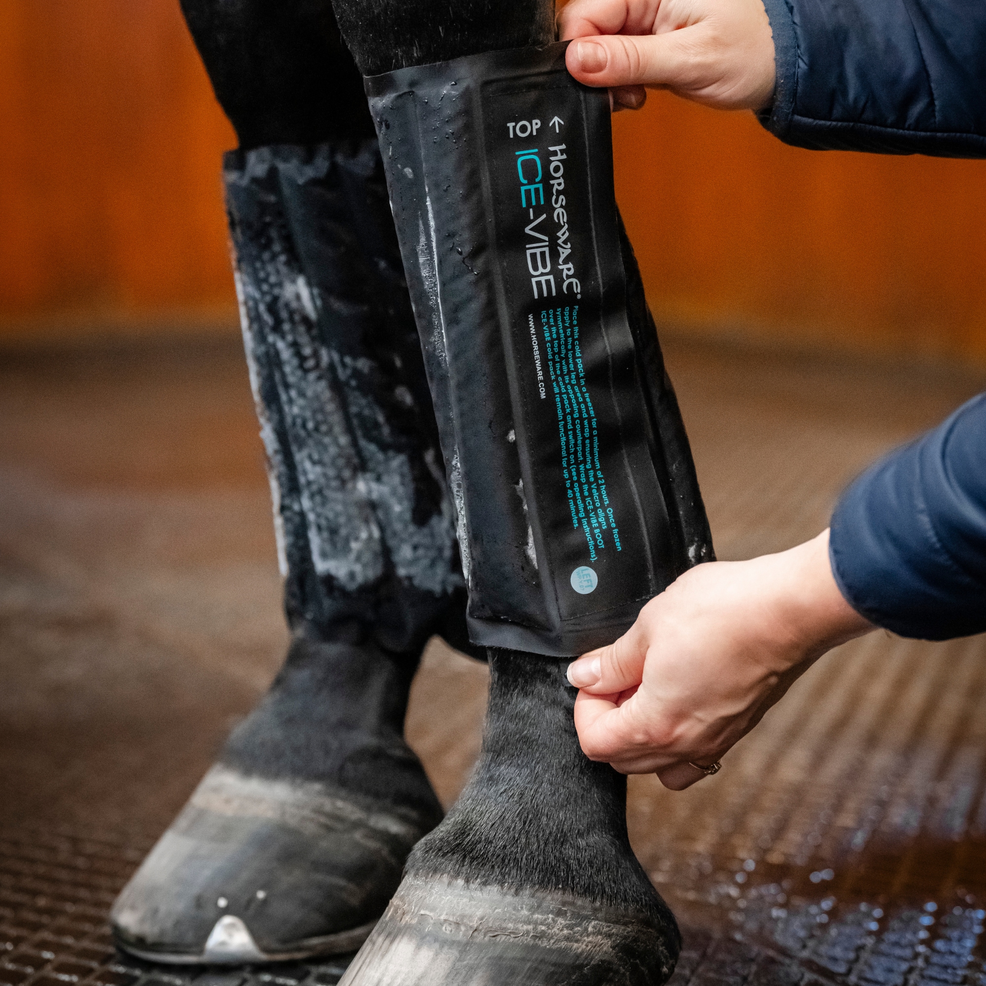 De är lätta att använda, sitter säkert på plats med en bred kardborreknäppning som löper längs benet och ger både justerbar passform och enkel hantering vid på- och avtagning. Kylpackarna börjar gradvis tina ca 20 minuter efter att de tas ur frysen, vilket minimerar risken för överkylning och gör behandlingen skonsam för hästen.