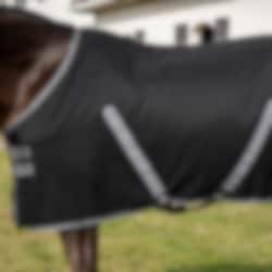 Die klassische Passform mit geradem Frontverschluss, verstellbaren Kreuzgurten und Schweifriemen sorgt für einen sicheren und stabilen Sitz - ideal für den Einsatz im Stall, beim Transport oder nach dem Training.