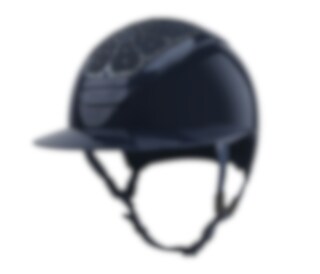 Reithelm mit Sonnenblende in Hochglanzoptik, das Riviera Top des Helms ist mit echten Swarovski-Kristallen gestaltet.