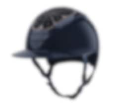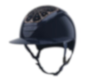 Reithelm mit Sonnenblende in Hochglanzoptik, das Riviera Top des Helms ist mit echten Swarovski-Kristallen gestaltet.