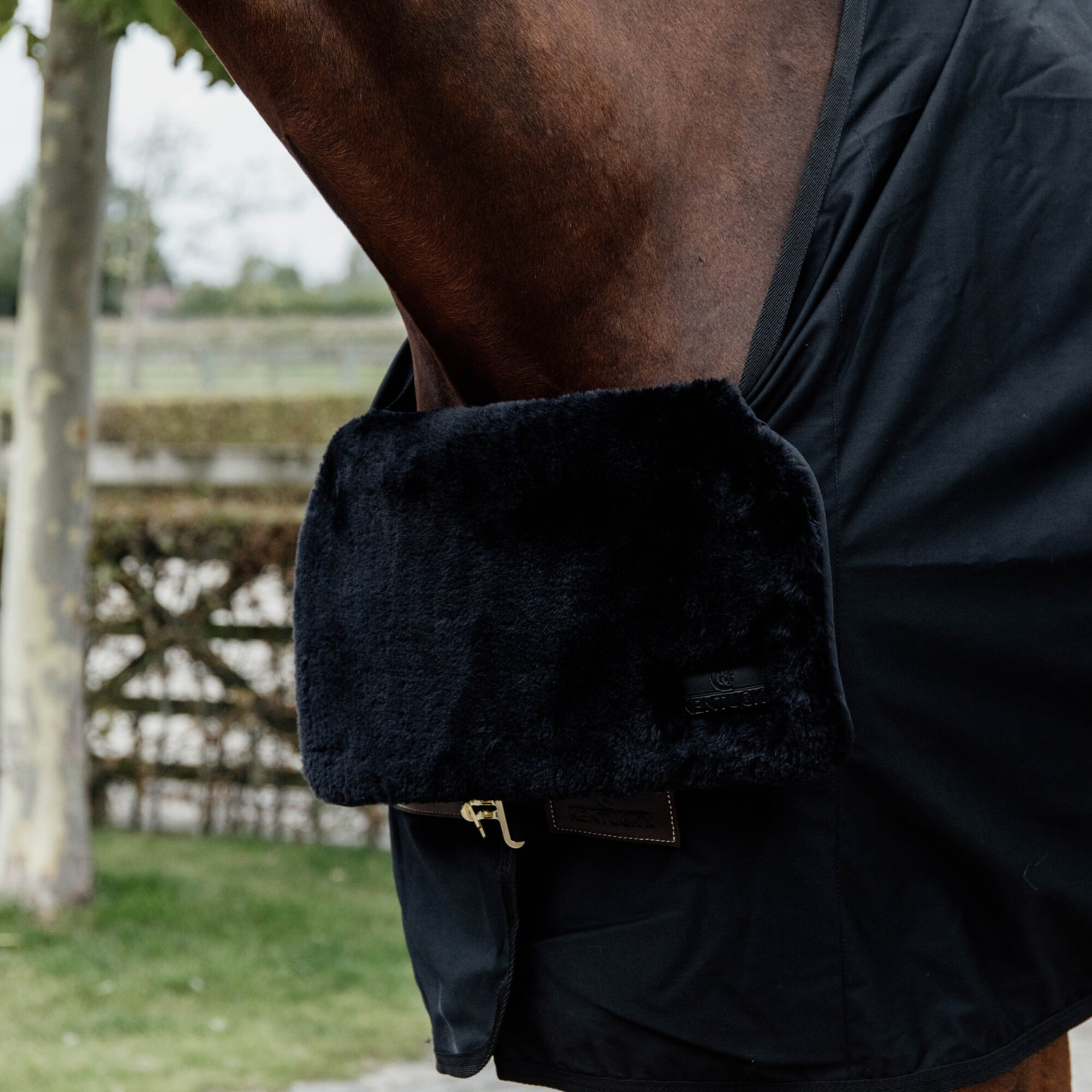 Dies ist eine großartige Option, wenn Sie Scheuern durch die Vorderseite der Decke bei Ihrem Pferd verhindern möchten. Allein für diesen Zweck wurde der Horse BIB Brustschutz von Kentucky entwickelt. Der Brustschutz ist so konstruiert, dass er nur durch Falten unter den Bugschnallen der Decke befestigt wird.