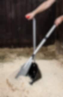 Der Mistschaber verfügt über einen Teleskopstiel, der bis zu 140 cm lang werden kann. Der Schaber hat 15 Zähne, die verstellbar sind und 20–45 cm lang sein können.