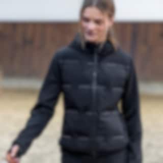 Die EQ KL Sara Hybridjacke ist eine stilvolle und funktionale Reitjacke mit wasserabweisender Oberfläche, Isolierung und reflektierenden Details für optimale Leistung und Komfort.