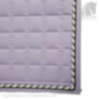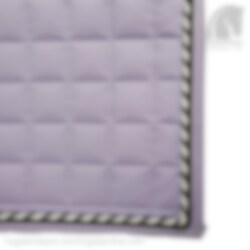 Diese Dressurschabracke hat eine wunderschöne hellviolette Farbe mit großer Steppung und zwei Zierkordeln, einer in Schwarz und einer in Schwarz/Silberglitzer/Weiß. Das Kantenband, das entlang der gesamten Schabracke verläuft, ist ebenfalls hellviolett.