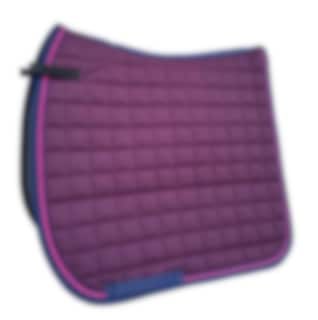 Die Dressurschabracke hat eine große Steppung (5x5cm) und ist am Widerrist mit weichem Teddy verstärkt, um ein Scheuern zu verhindern. Die Dressurschabracke von Mias RS ist mit zwei Zierkordeln ausgestattet, die entlang der gesamten Schabracke verlaufen, eine in Rosa und eine in Marine. Wie alle Dressurschabracken von Mias RS behält auch diese eine hohe Qualität und Passform bei.