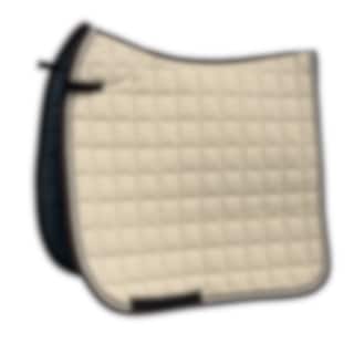 Die Dressurschabracke hat eine große Steppung (5x5cm) und ist am Widerrist mit weichem Teddy verstärkt, um ein Scheuern zu verhindern. Die Dressurschabracke von Mias RS ist mit zwei Zierkordeln ausgestattet, die entlang der gesamten Schabracke verlaufen, eine in Braun und eine in Creme. Wie alle Dressurschabracken von Mias RS behält auch diese eine hohe Qualität und Passform bei.