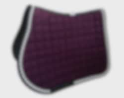 Die Springschabracke wird in Schweden hergestellt, hat eine schöne Pflaumenfarbe mit einer Einfassung in Schwarz und zwei Zierkordeln, einer in Silber und einer dreifarbig in Schwarz/Silber/Weiß. Wie alle Schabracken von Mias RS ist auch diese hochwertig verarbeitet und hat eine sehr gute Passform. Die Schabracke besteht aus Baumwolle mit einem weichen Teddy am Widerrist, um ein Scheuern zu verhindern.