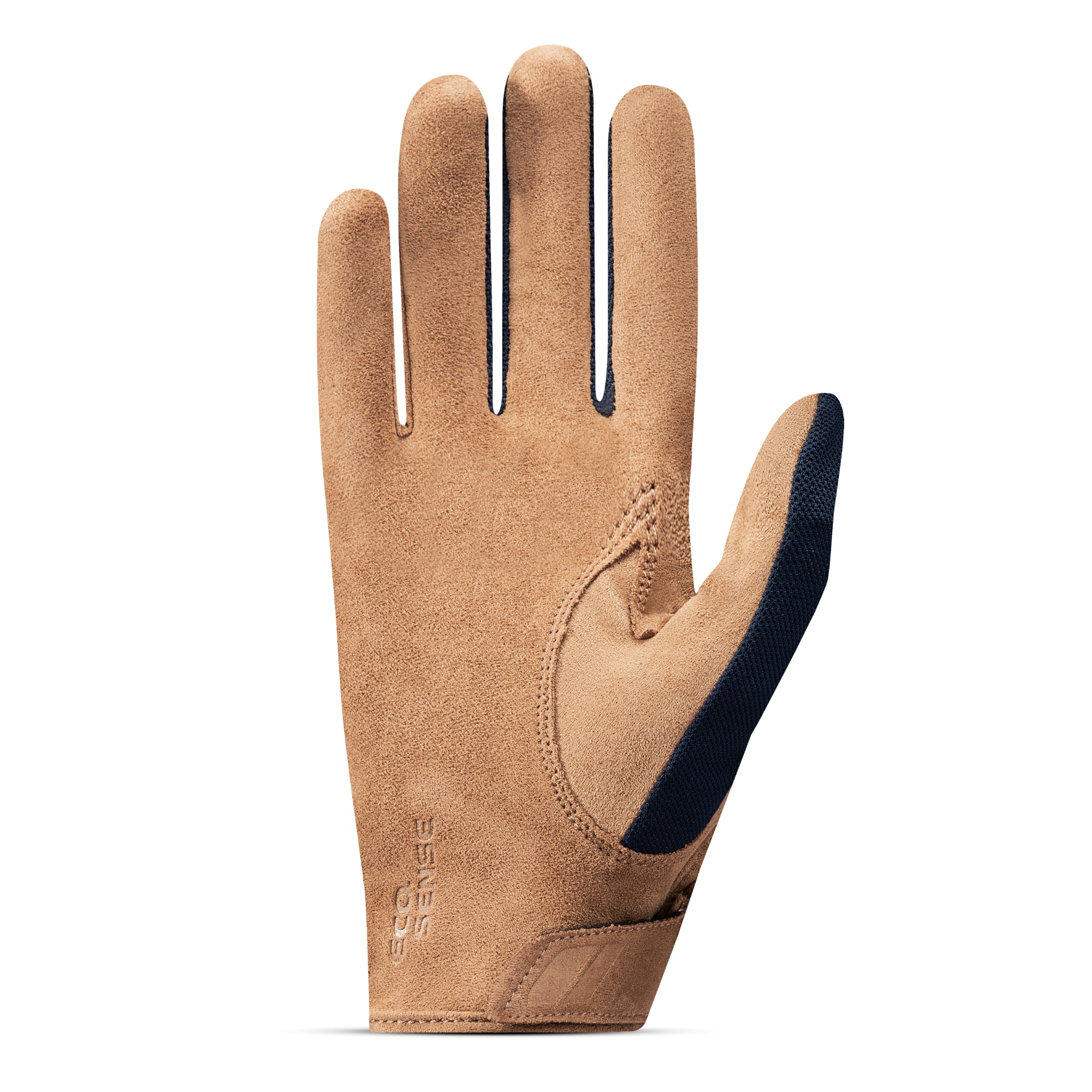 Der Reithandschuh hat ein luftiges und elastisches Micro-Mesh-Material auf dem Handrücken, was ihn zu einem perfekten Handschuh für warme Tage macht. In der Innenhand findet sich stattdessen das strapazierfähige und weiche Eco Sense-Material, das aus 92% Polyester (davon 60% recycelt) und 8% Elasthan besteht.