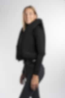 Schwarz Airbag-Weste SAFEFIT zum Reiten von Seaver. Zugelassen nach dem Standard NF S72-800-2021.