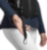 Ein Ende wird bei Gebrauch an der Steigbügelklemme des Sattels befestigt und das andere Ende führt zum Auslösemechanismus der Luftweste. Bei einem Sturz löst der Ruck im Gurt die Gaskartusche der Weste aus, wodurch sich die Luftkanäle der Weste mit CO² füllen. Das Gas bläst die Weste wie einen Airbag auf und schützt Rumpf, Brust, Nacken, Rücken und Wirbelsäule des Reiters.