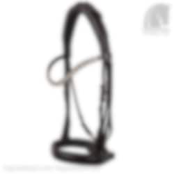 Die rundgenähte Kandare von der Sattlerei Otto Schumacher ist eine schokoladenfarbene München Feel Good Kandare mit dem etwas breiteren, gut gepolsterten Genickstück, das Feel Good genannt wird, weil es weicher am Nacken des Pferdes anliegt. Der Nasenriemen dieser rundgenähten Kandare ist 4,5 cm breit und hat eine dicke Polsterung in der gleichen Farbe wie der Rest der Kandare.