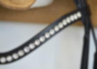 Eine der fantastischen rundgenähten Trensen von Otto Schumacher mit einem klassischen Stirnband mit Swarovski-Steinen in der Farbe Crystal.