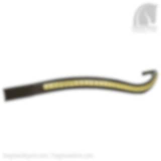 Bogenförmiges Stirnband von Otto Schumacher. Das Stirnband besteht aus braunem Leder mit schönen Messingklinkern. Das Klinker-Stirnband ist sowohl für glatte als auch für rund genähte Trensenzäume erhältlich. Größe Full