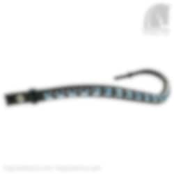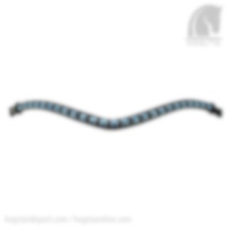 Das Stirnband Rivoli von Otto Schumacher besteht aus schwarzem Leder von höchster Qualität und ist mit großen Swarovski-Kristallen in der Farbe Denim Blue verziert.
